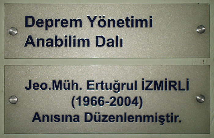Aramýzdan zamansýz ayrýlan can dostumuz Ertuðrul Ýzmirli adýna ve anýsýna mezun olduðu üniversite olan Dokuz Eylül Üniversitesi (Ýzmir)’nde bir oda düzenlenmiþtir. Üniversitedeki dönem arkadaþlarý (Ýbrahim Arpalýyiðit, Ahmet Remzi Özdemir, Arif Kamil Gürorman, Cem Bahçeler) ve Konlas A.Þ.’nin katkýlarýyla Dokuz Eylül Üniversitesi, Fen Bilimleri Enstitüsü’nde düzenlenen oda, Deprem Yönetimi alanýnda yüksek lisans eðitimi veren birimin anabilim dalý baþkanlýðý olarak kullanýlacak ve dostumuzun adý sonsuza dek yaþayacaktýr.
